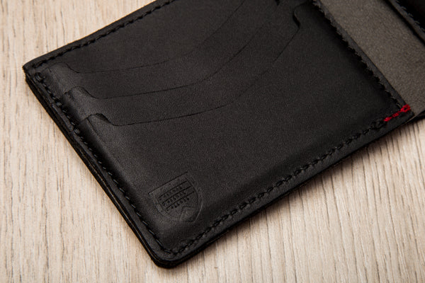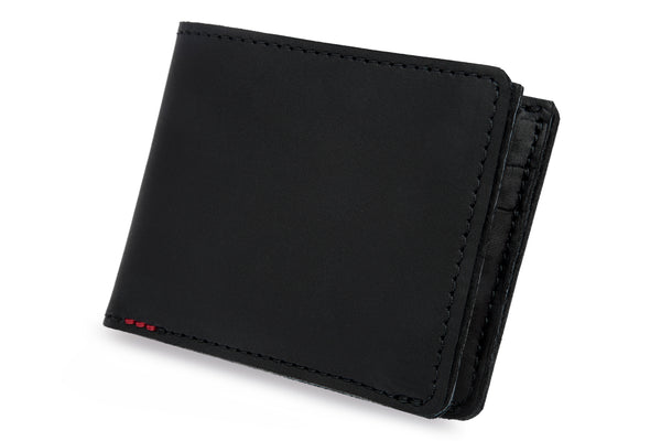 Leather wallet with trademark Shapland magnetic bill-fold area allowing for easy access and placement of both money and receipts. Once you have it, you'll wonder how you ever lived without it.